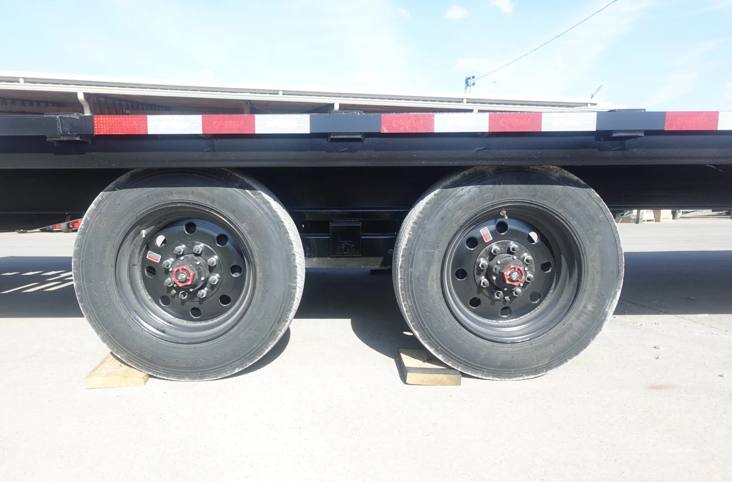 The 8.5-foot by 30-foot gooseneck deckover trailer is engineered for heavy-duty performance, featuring rugged King Kong loading ramps and a self-cleaning dovetail for efficient loading and unloading. With two greaseable 10,000lb axles and a robust I-beam frame, it’s built to handle the toughest jobs with ease. A convenient chain basket at the front provides organized storage, making it the perfect choice for demanding hauling tasks.